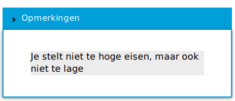 Uit de ontvangen feedback van mijn collega weet ik dat het me aardig lukt om het niveau aan te passen aan wat mijn leerlingen kunnen en nodig hebben. Ik ben hier trots op, want dit is geen gemakkelijke taak en ik heb er hard aan moeten werken om de stof aantrekkelijker en relevanter te maken, zonder dat het te eenvoudig en saai wordt. Ik ben tevreden met mijn gemaakte keuzes en neem de verbeterpunten mee voor komende projecten.